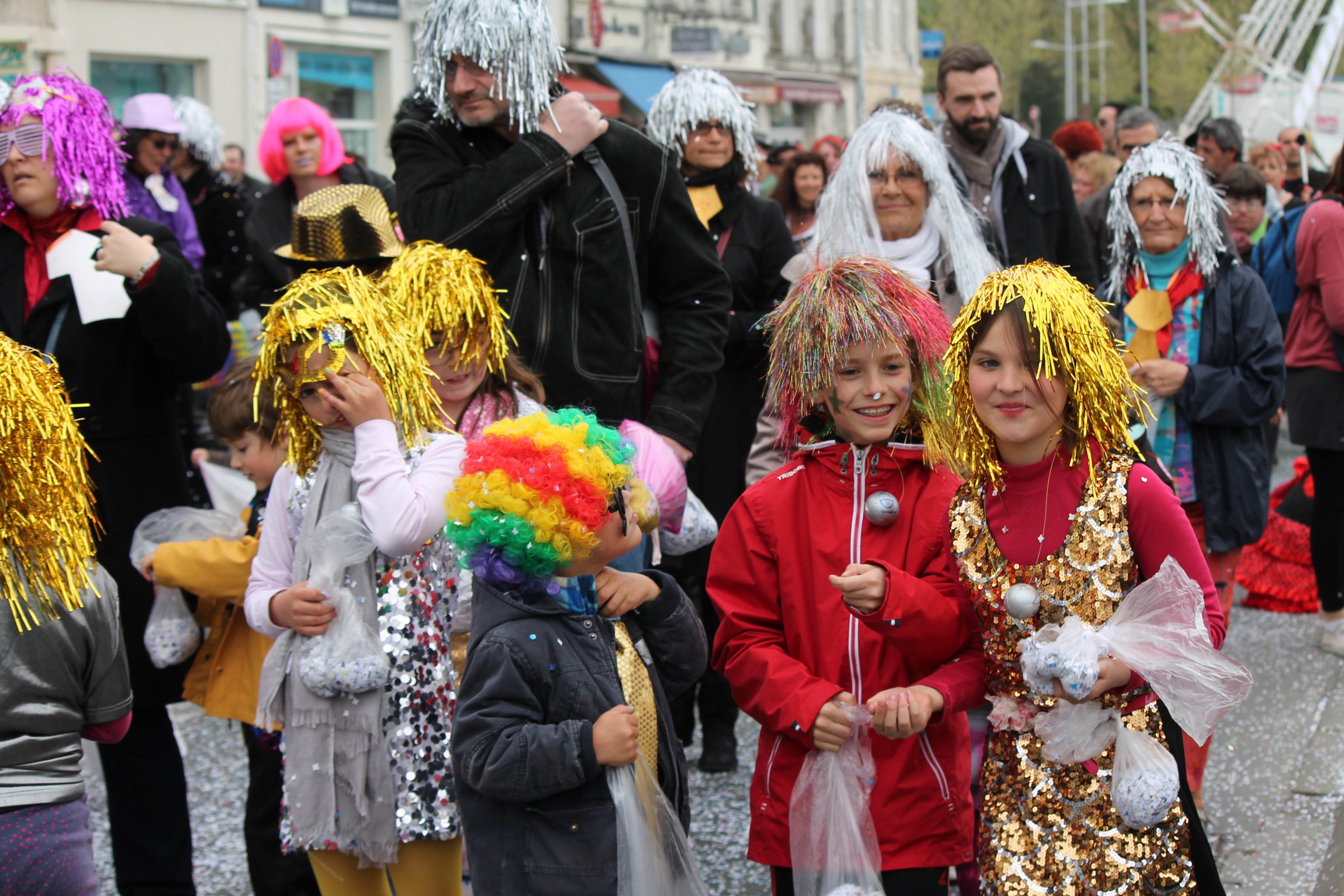 Carnaval de La Rochelle — More Confetti Girls — Be sure to note mom and grandma also in crazy wigs.