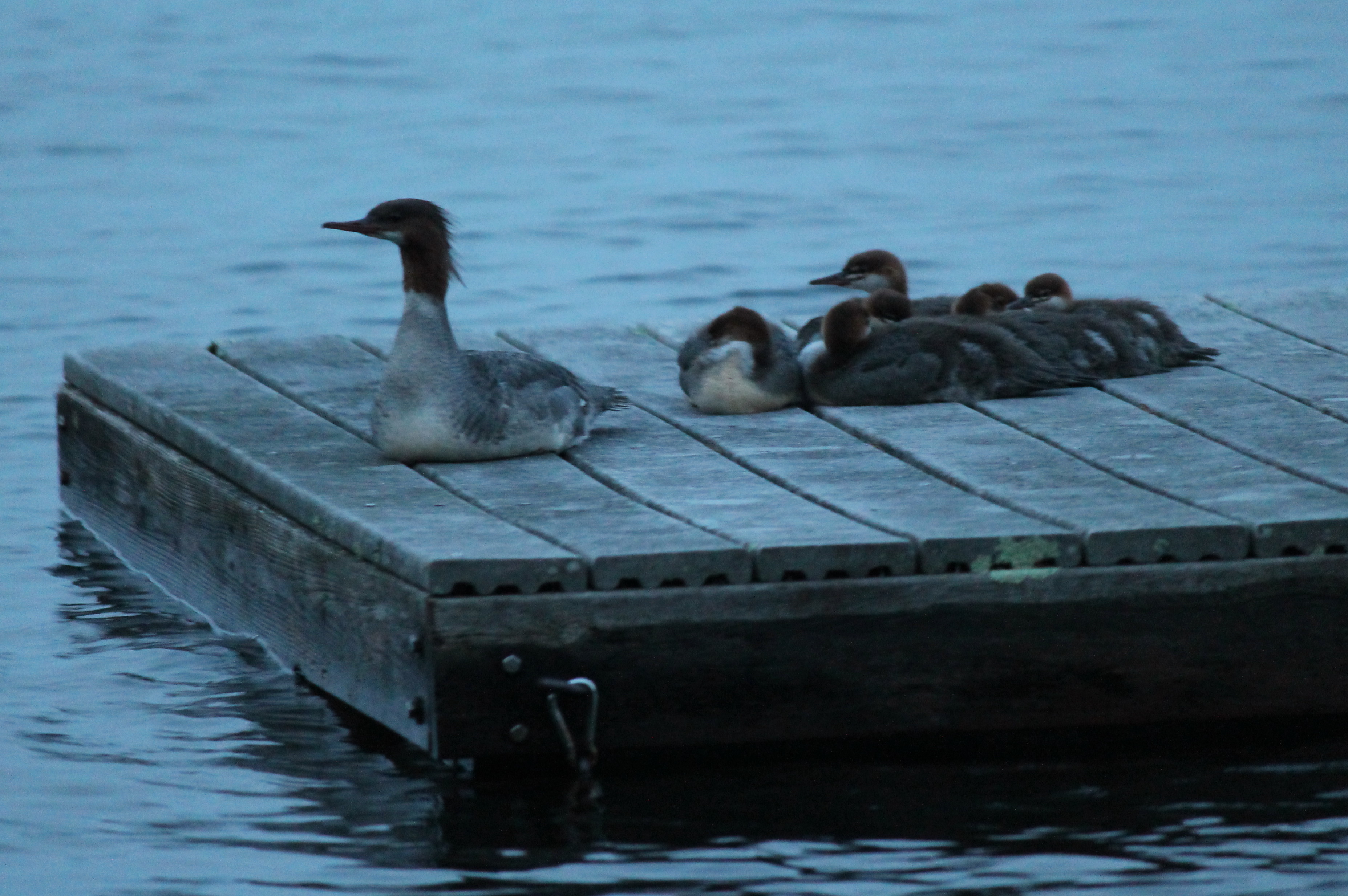 And I managed to sneak up on this little merganser family: