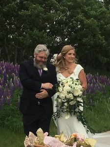 David’s brother Doug stood in for David in walking Chelsea down the aisle. I didn’t realize how perfectly it would coordinate with the lupines when I cast my vote for the purple tie, but there you go!