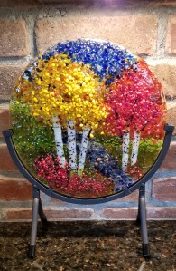 So I’m still pretty busy. I’ve continued my fused glass fun, so that qualifies as jolly, even though my results are never quite what I hope they’ll be. I’m still very much a beginner. Here’s the final version of the first one I made . . .