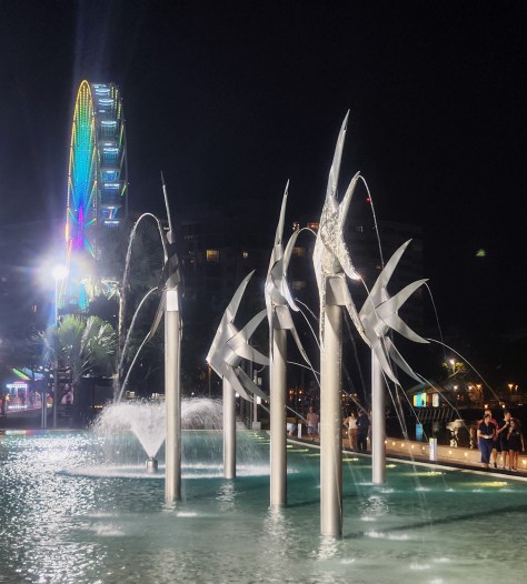 For the last bit before Cairns, we were in jungle and stop-and-go traffic. Storms had washed out half the road at places, so we had to alternate with westbound traffic. Finally we were clear but behind a SUPER-slow, crazy-cautious driver who would not pull over even when he had the opportunity. GHAAAAA! It was already dark by the time we made it into Cairns.